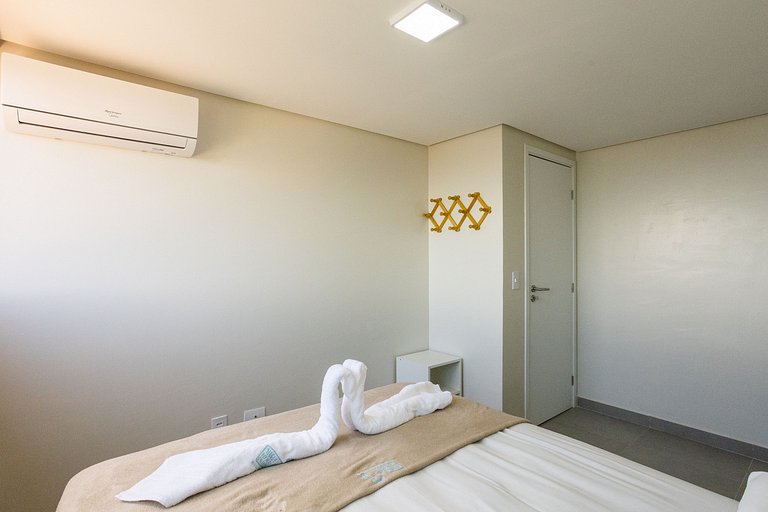 O apartamento possui todos os utensílios necessários para que você não precise se preocupar, inclusive enxoval de cama e banho. Você também encontrará ar condicionado split nos quartos.