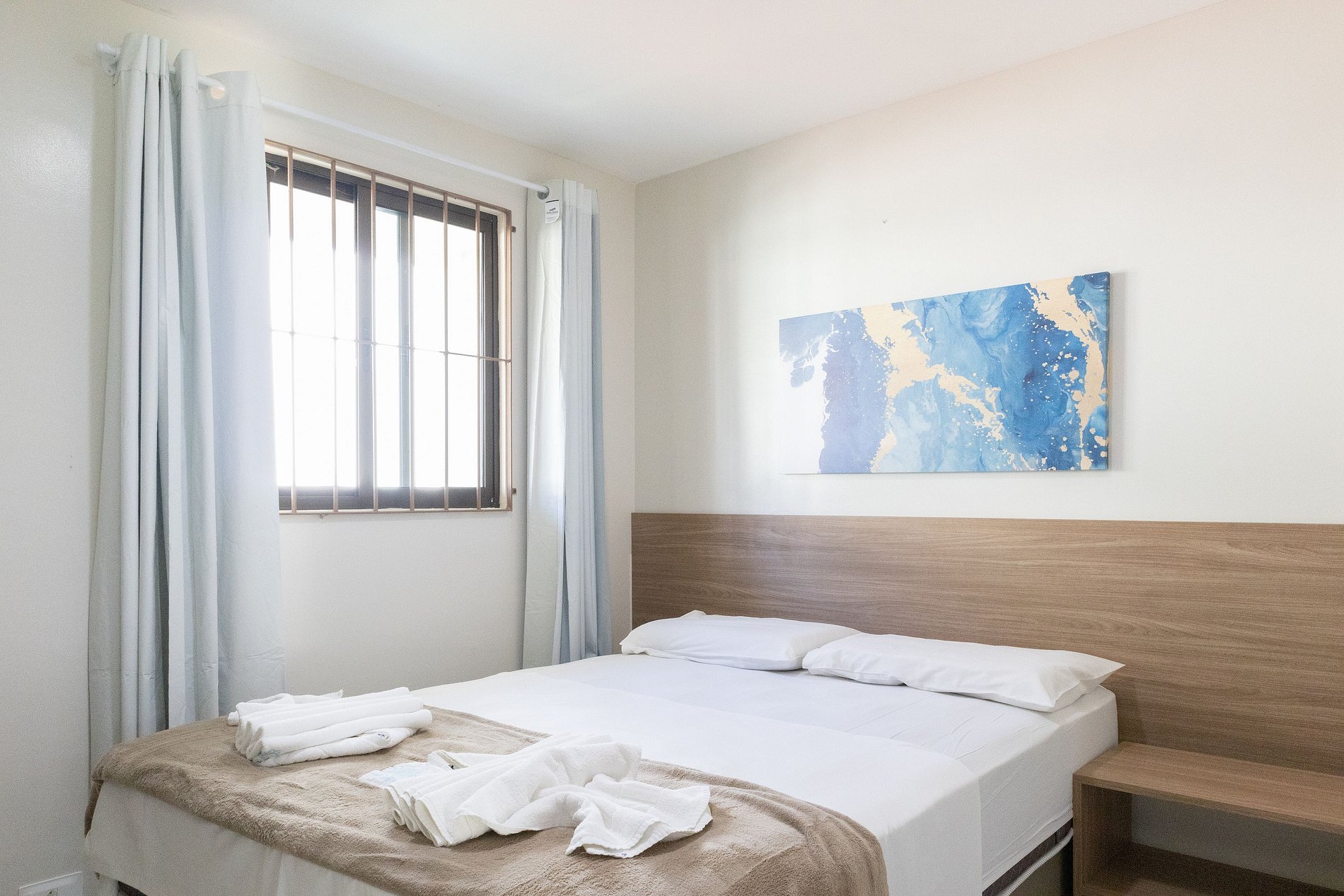 Nossos apartamentos comportam o máximo de hóspedes descritos nas informações da acomodação, não aceitamos hóspedes além da capacidade máxima do apartamento. Receber convidados além da capacidade máxima do apartamento também não será permitido. A limpeza durante a estadia e troca de roupas de cama e banho não estão inclusas na locação, consulte nossos preços para estes serviços.