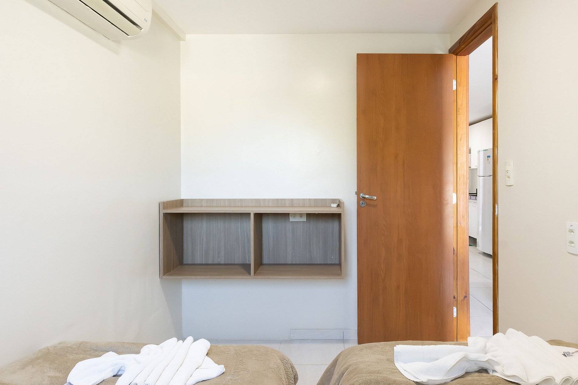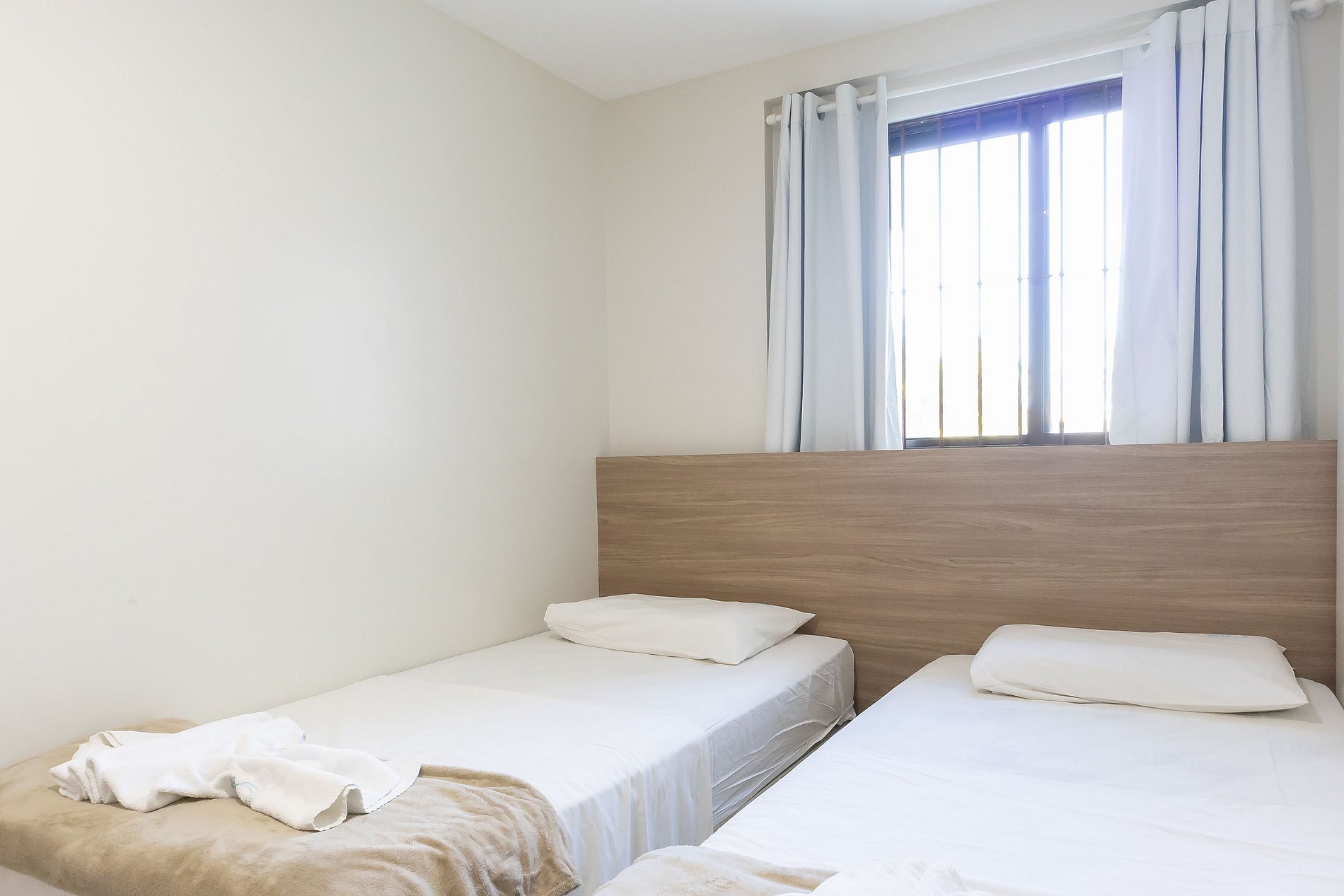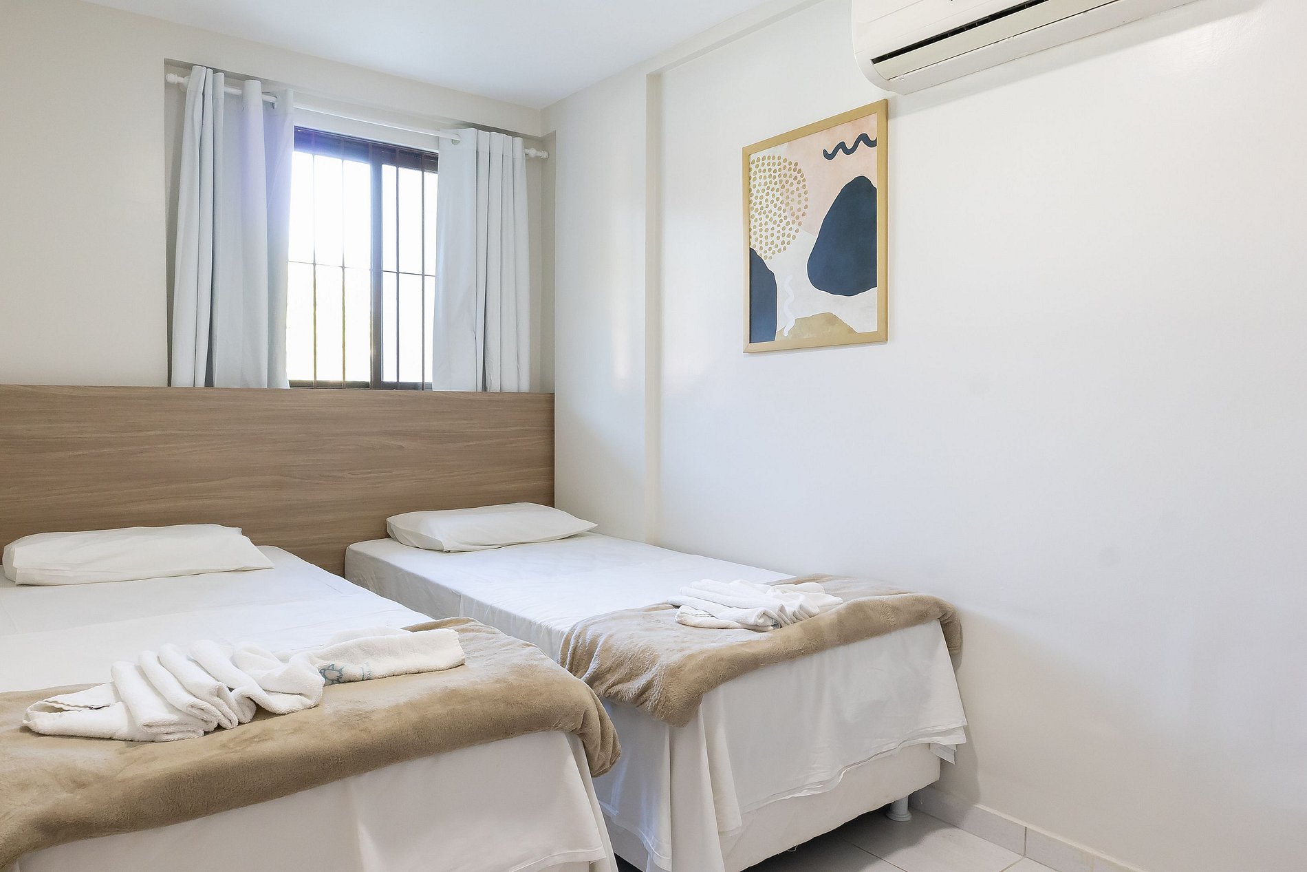 Este apartamento possui 2 quartos sendo um com cama de casal e outro com duas camas de solteiro, além de 1 colchão de solteiro extra, possibilitando acomodar então até 5 pessoas no total.