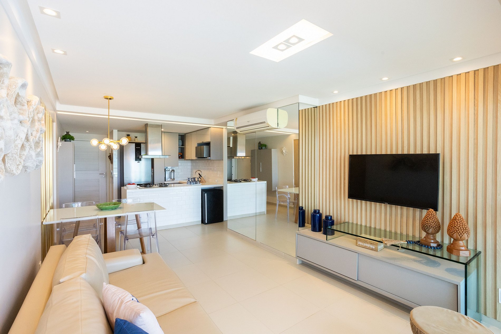 O apartamento possui todos os utensílios necessários para que você não precise se preocupar, inclusive enxoval de cama e banho. Você também encontrará Smart TV e ar condicionado split nos 2 quartos e na sala.