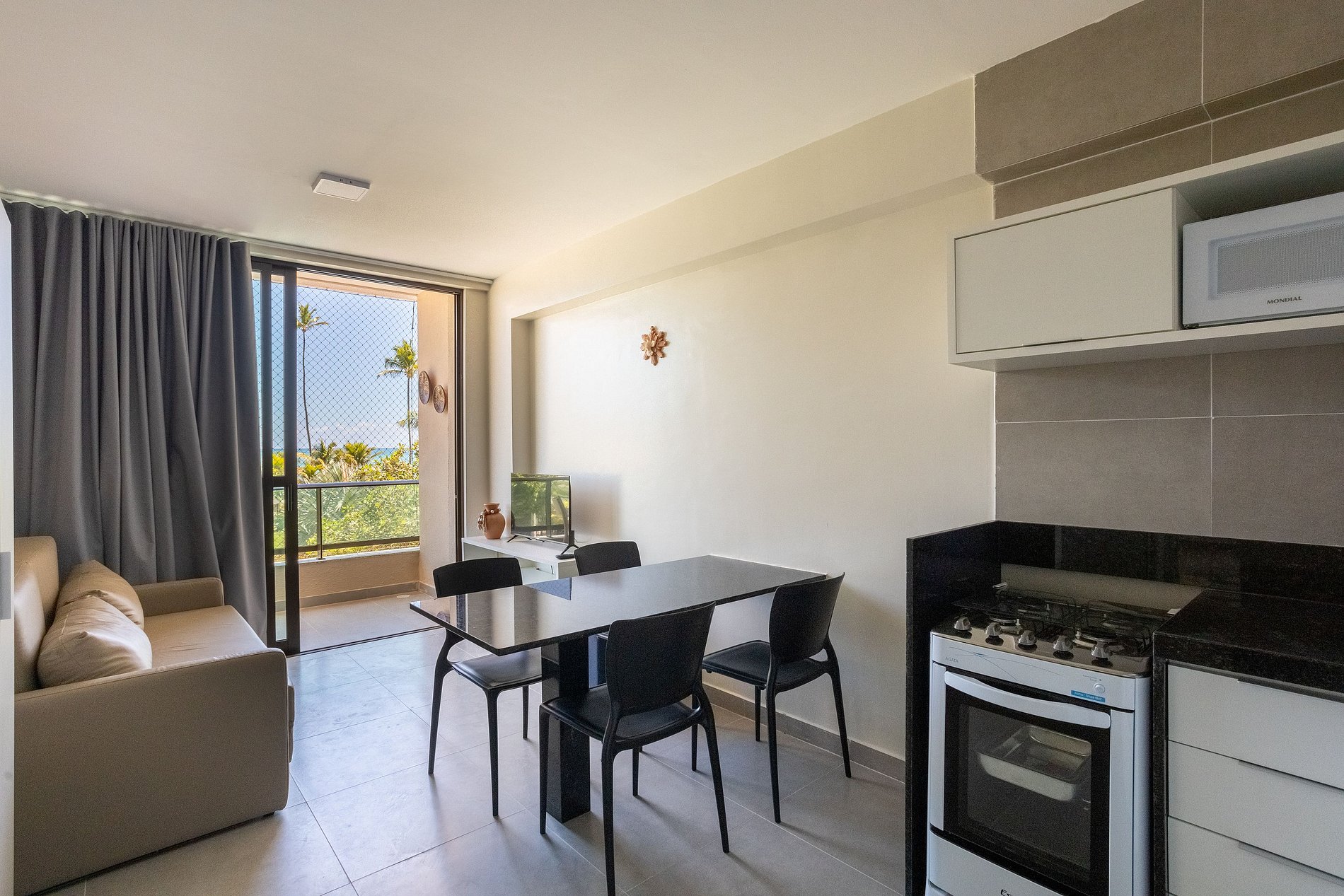 O apartamento possui todos os utensílios necessários para que você não precise se preocupar, inclusive enxoval de cama e banho. Você também encontrará ar condicionado split no quarto.
