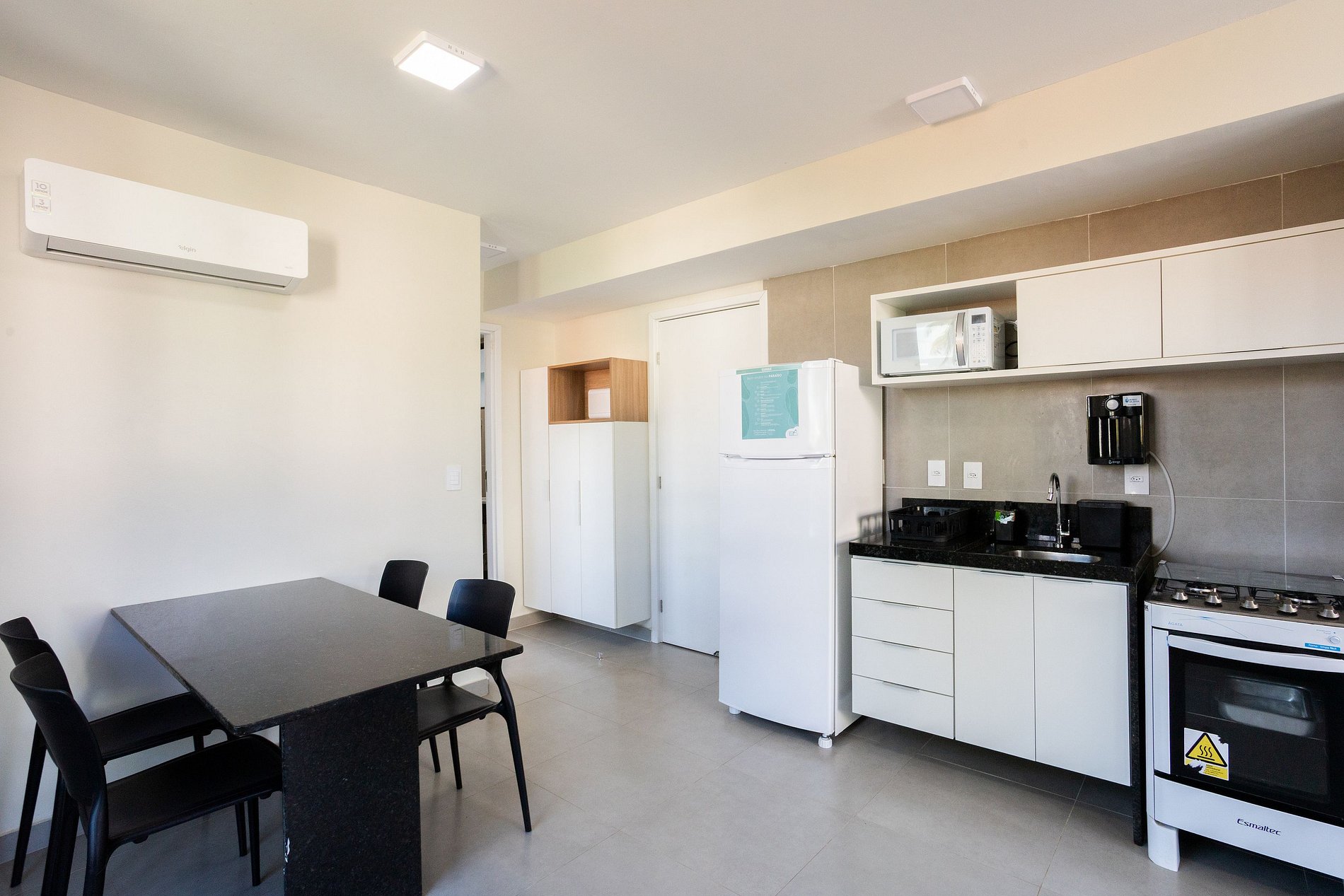 O apartamento possui todos os utensílios necessários para que você não precise se preocupar, inclusive enxoval de cama e banho. Você também encontrará ar condicionado split no quarto.