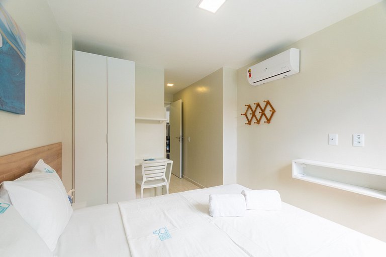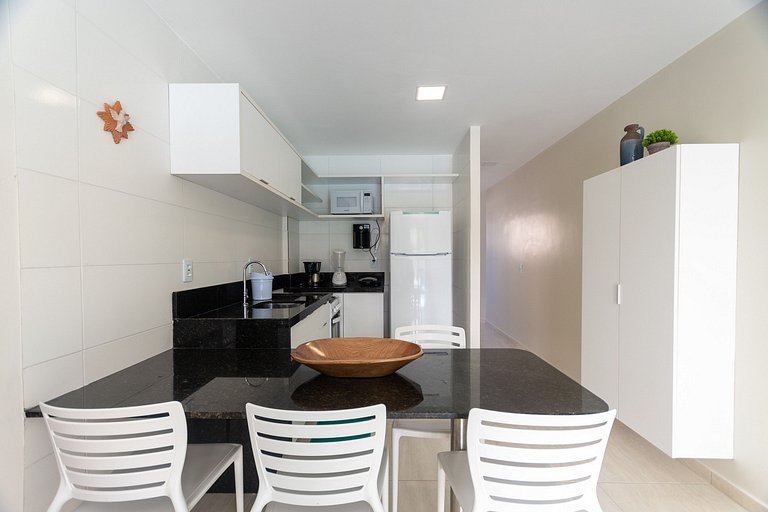 Nossos apartamentos possuem todos os utensílios necessários para que você não precise se preocupar, fornecemos inclusive um kit com 1 guarda-sol e 4 cadeiras de praia, para que nossos hóspedes possam curtir ainda mais a praia de Porto de Galinhas! Dispomos de vagas de estacionamento rotativas no condomínio.