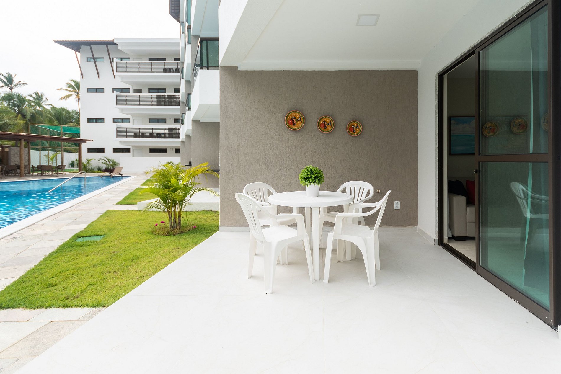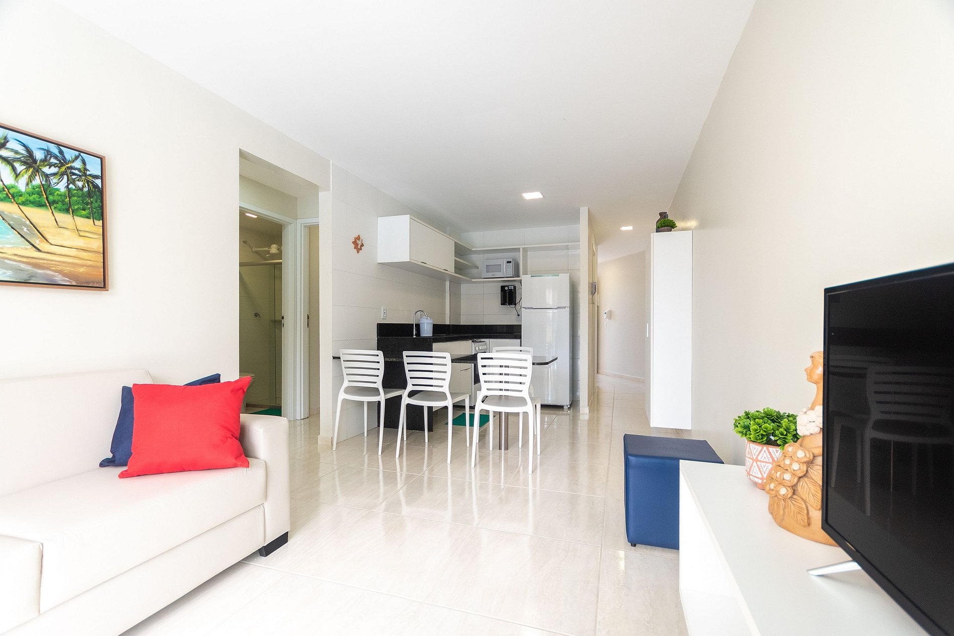 Nossos apartamentos possuem todos os utensílios necessários para que você não precise se preocupar, fornecemos inclusive um kit com 1 guarda-sol e 4 cadeiras de praia, para que nossos hóspedes possam curtir ainda mais a praia de Porto de Galinhas! Dispomos de vagas de estacionamento rotativas no condomínio.